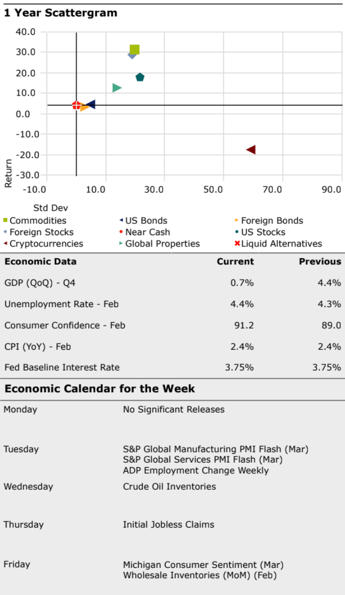 Meanwhile, the bond market continues to ignore its job description. The 10-year Treasury climbed to 4.4%, and bonds – yes, the supposed safe haven – are quietly in another bear market. Down 51 basis points last week and now off 68 basis points on the year. Not catastrophic, but let’s be honest – when things get shaky, bonds are supposed to help. Lately, they’ve been more “spectator” than “shock absorber.”